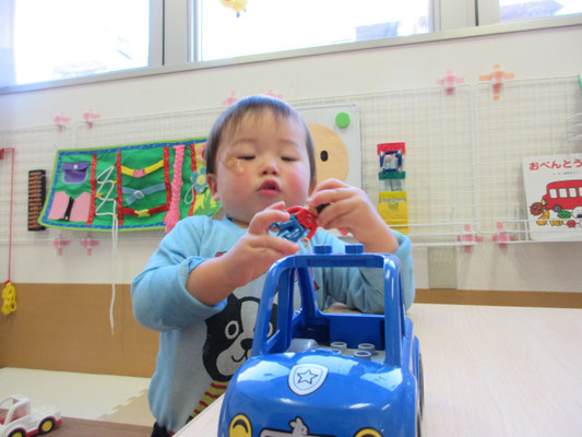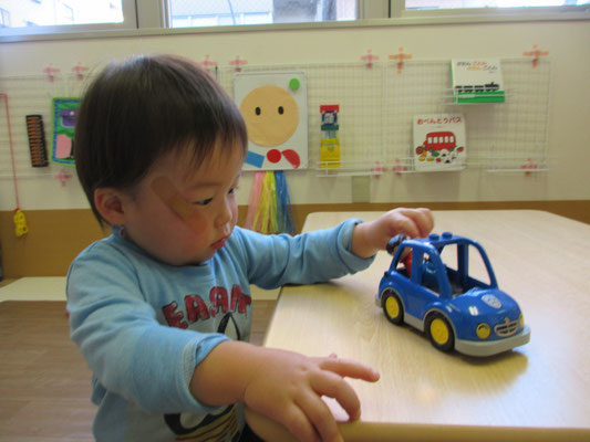 以前までは車をそのまま走らせていましたが、今では人を乗せてドライブ♪自分で考えて遊ぶ姿も増えてきています^^