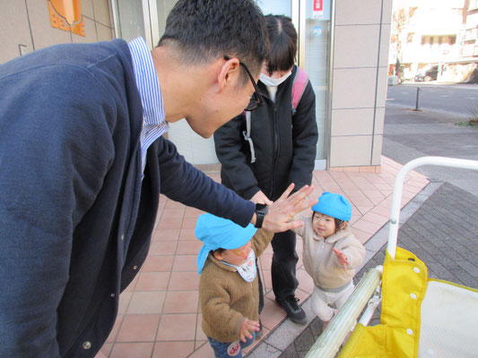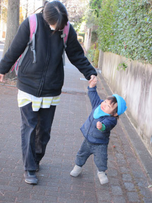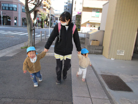お散歩で手を繋いで歩く経験を重ねて、ご家庭でも一緒に歩いてお散歩する機会につながっていければと思います^^