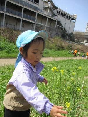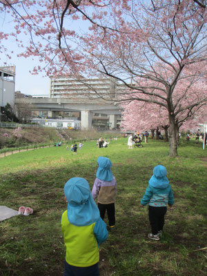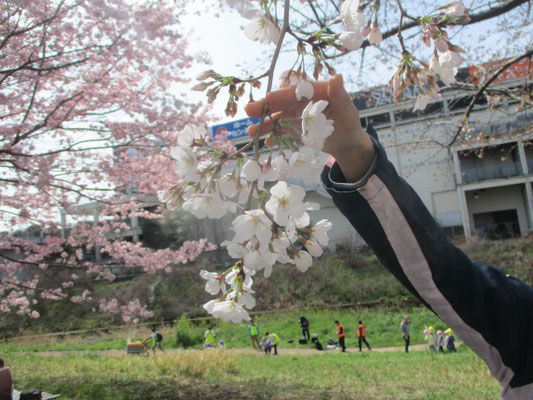 早淵川は桜が満開で、花びらをちょんちょんと触ってみたり、”よーいドン!”と斜面を登ってみたり・・・春ならではの自然と触れた一日になりました!