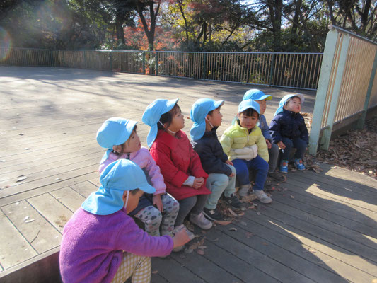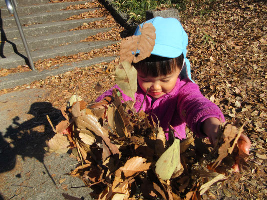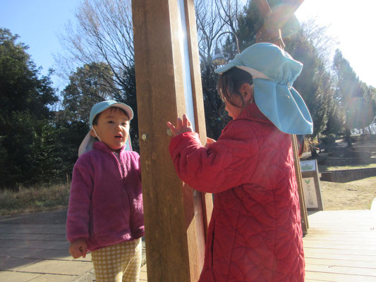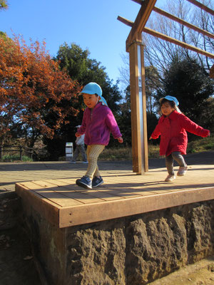 みんながお気に入りの中央公園、正月飾りを見学したり、どんぐりを拾ったり追いかけっこをしたり…