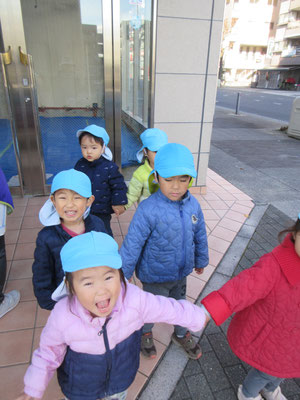 雲一つないお天気のなか、「○○ちゃん、手つなご~!」「いいよ!」と話しながら、みんなで手を繋いで出発です☆