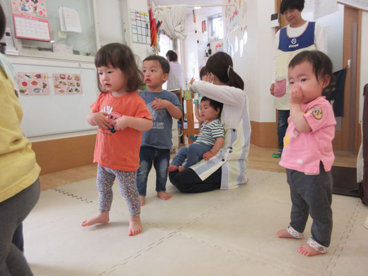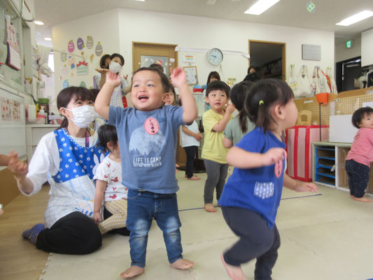 ハローソングを踊って、お話を聞いて・・今月の曲を踊って楽しみました。
