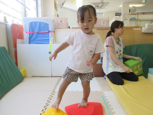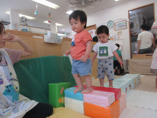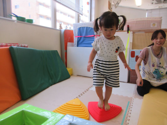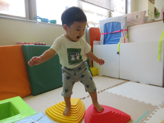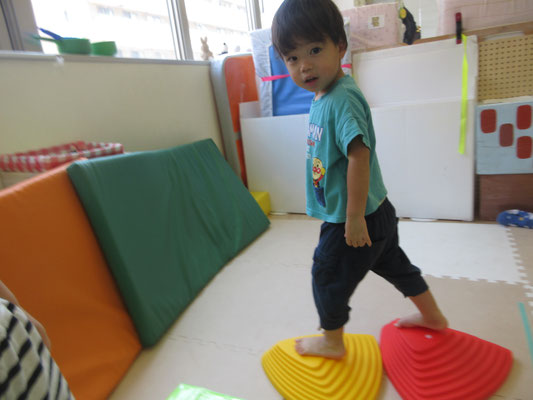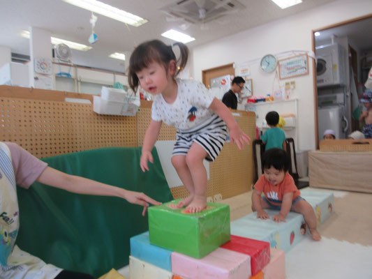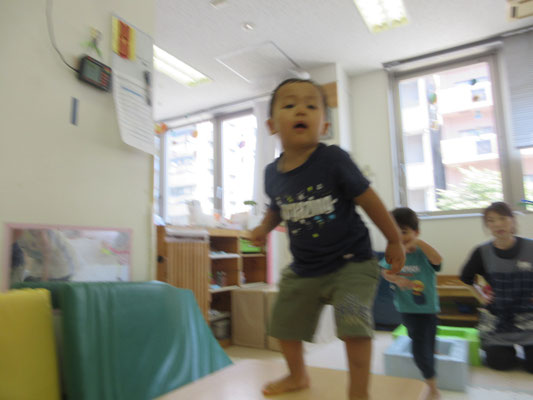 運動遊びは、ジャンプ、坂道やマットと意欲的でした。