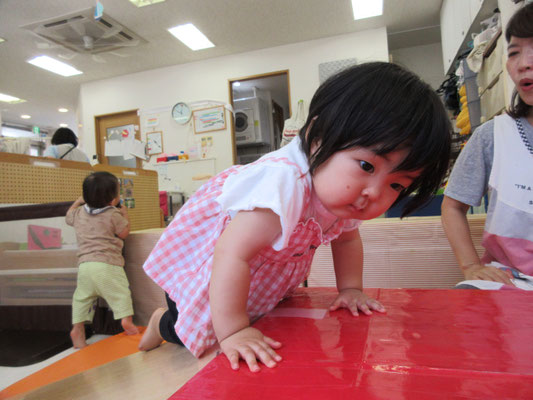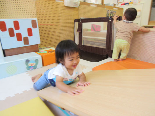 よく楽しんでいる机滑り台は、登るのも楽しいけれど