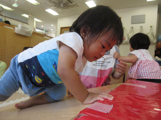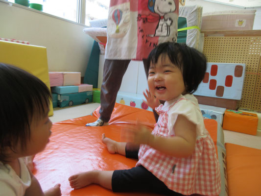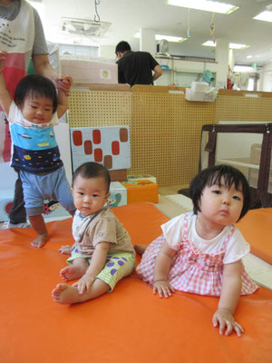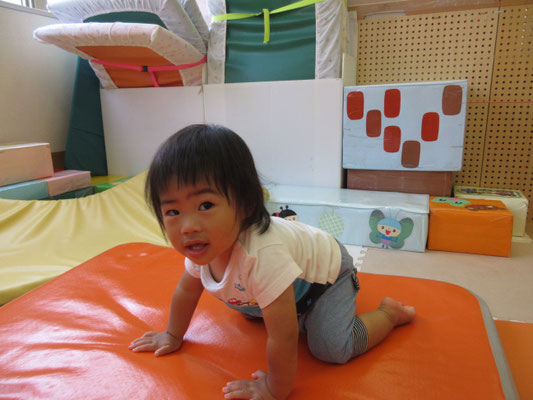 最初はまずこのトランポリンの大きさに驚いて中々近づくことが少なかったこともありましたが、保育者や周りのお友だちの楽しむ姿を見てこうして遊びにどんどん参加し楽しみや面白さを見つけられるようになってきたほし組です☆