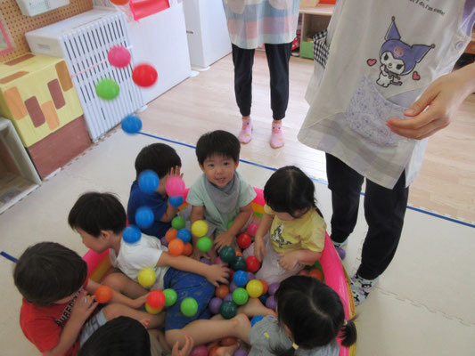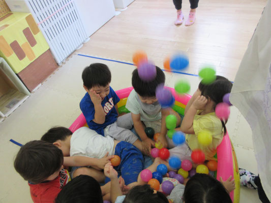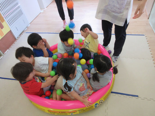 今日はボールプールがしたい!というにじ組さんのリクエストがあり、さっそくやることにしました☆