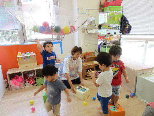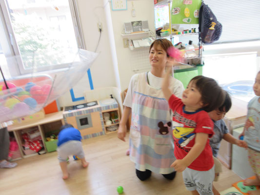 投げる・入れるだけでなく、発想を膨らませながら遊べる子が増えてきました!子どもたちの想像力を大切にしながら、関わっていきたいと思います。