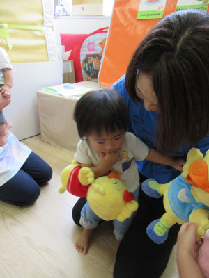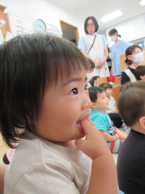 音楽と歌が流れるとみんなの表情はわくわく顔です^^