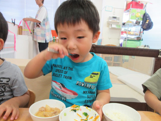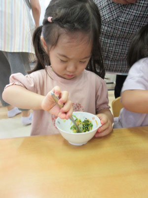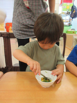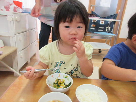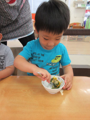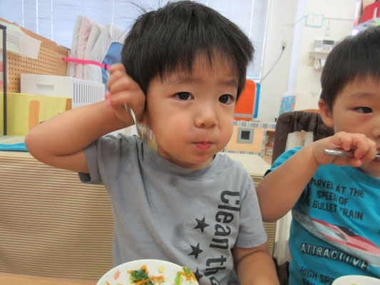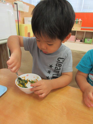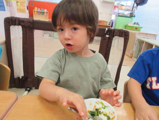 「自分でやりたい」という思いが強い子たちなので、自分で作るということも楽しかったようです!いただきますをすると、すぐに口に運びました♪苦手な子も一口だったり、その中でも食べられる食材を自分で選びながら食べていて、自分で作って食べるということの良さを感じることが出来ました!