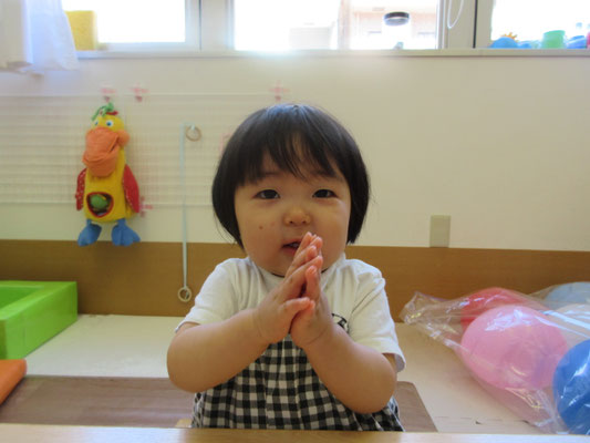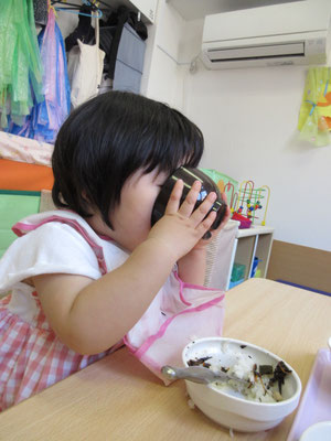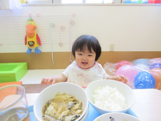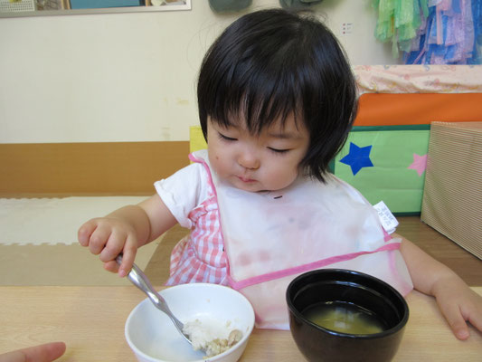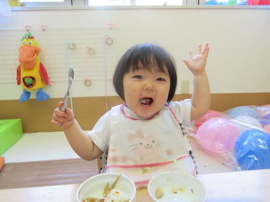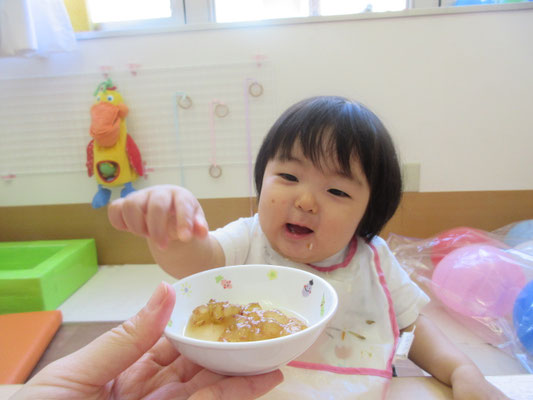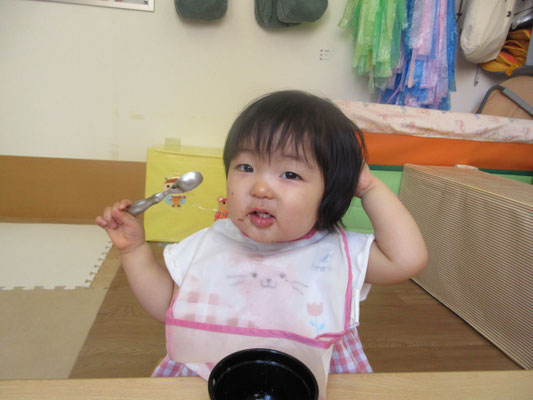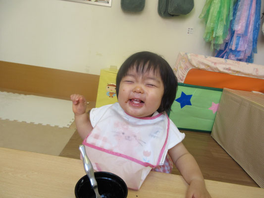 今月から完了食になったSちゃん、給食の時間が更に楽しくなったようです^^