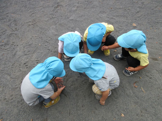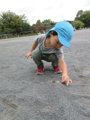 アリやどんぐりを見つけたりと次々と楽しい事を見つけて遊んでいきます。