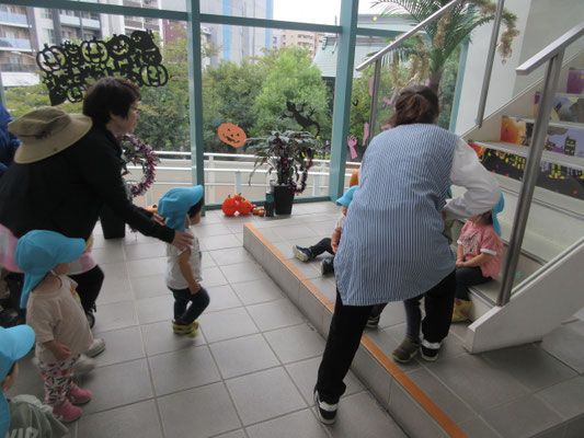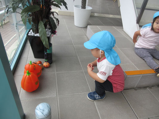 英語の後、外を見てみると雨がやんでいたので駅周辺の散歩に行きました。今月末にはハロウィンのイベントがあったり、昨日もハロウィンバッグを作ったので、ハロウィン探しをしました♪