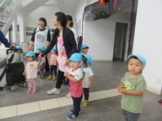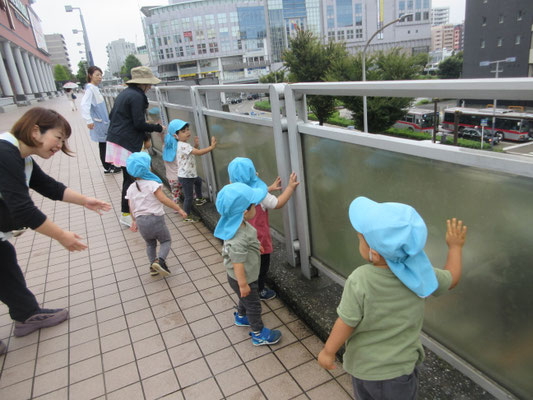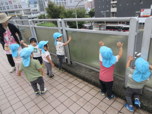 その後も、バスや車を見たり、駅内を歩き散歩してきました。少しのお散歩だったけれど楽しかったね!!