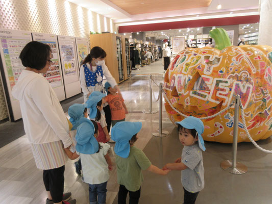 その後、雨が降りそうだったので、駅の近くを散歩。ペットショップで鳥を見たり、お店の中の大きなかぼちゃのオブジェを見て、楽しんできました。