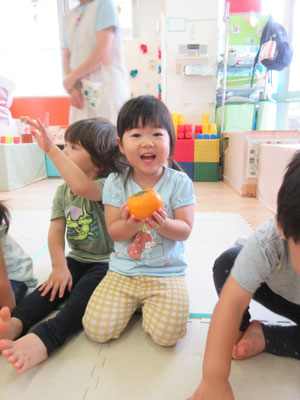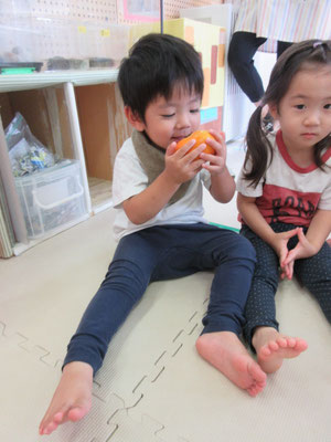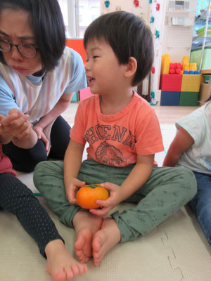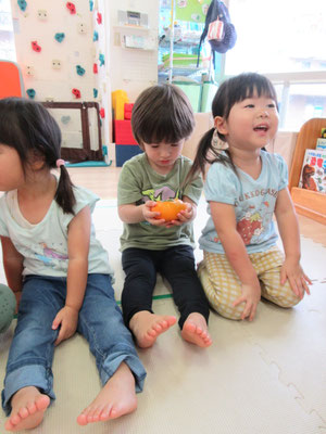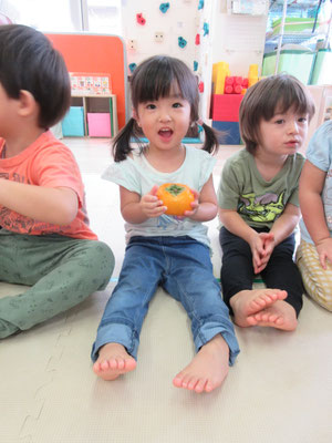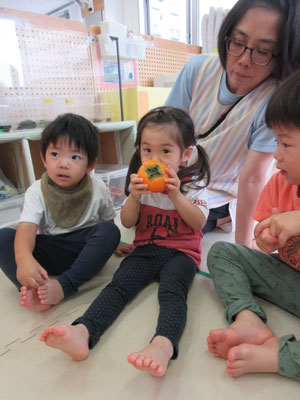 それぞれの感性で柿の特徴を感じながら、次のお友だちに優しく渡していました。