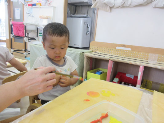 絵の具が好きな子、苦手な子、それぞれですが楽しく取り組んでいました。