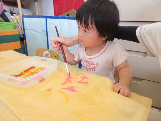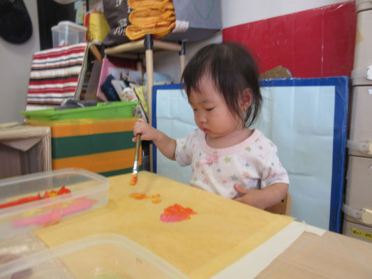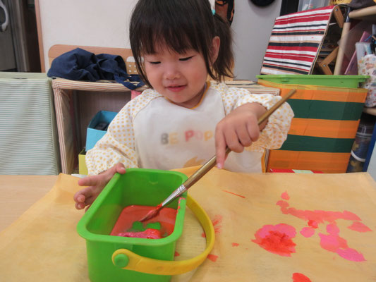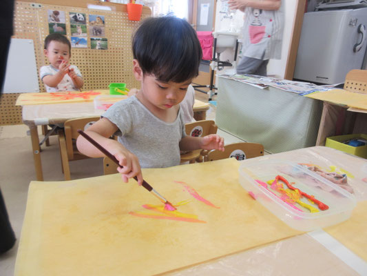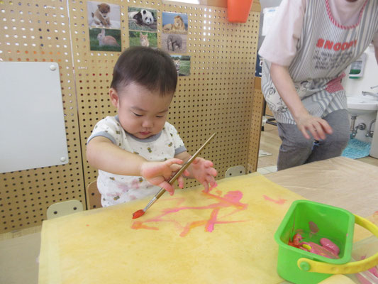 絵の具が大好きな子は笑顔で取り組んでいます♪